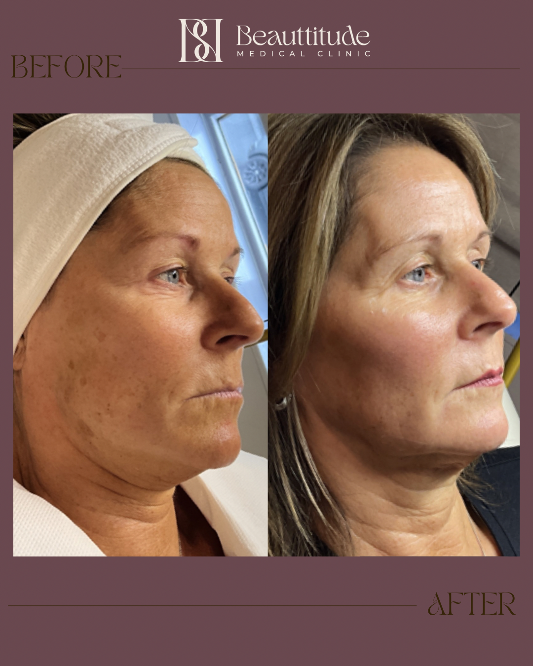 In the image above, my lovely patient began one of our personalised Beauttitude skin programmes, combining carefully selected in-clinic treatments with a tailored Obagi Medical skincare protocol designed specifically around her concerns and lifestyle. The intention was never quick correction. It was gradual biological improvement. Over the following five months, the approach remained consistent and intentional encouraging collagen stimulation, restoring deeper hydration, strengthening the skin barrier, and supporting natural cellular renewal.